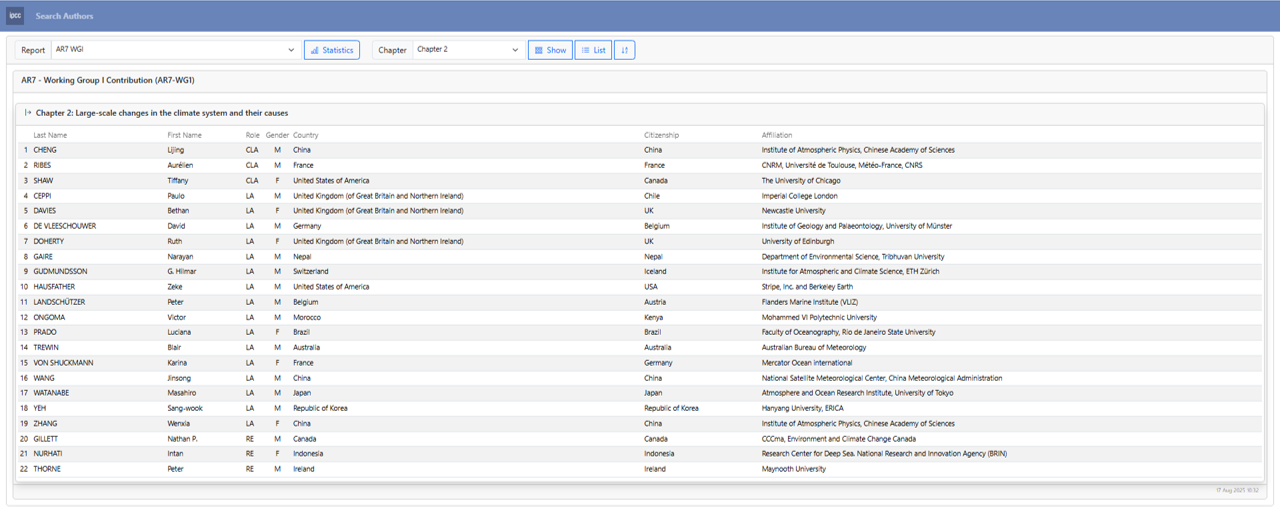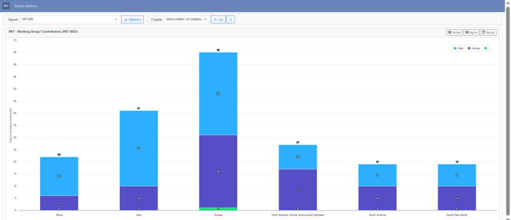 You can explore the statistics of the selected authors here: https://apps.ipcc.ch/report/authors/